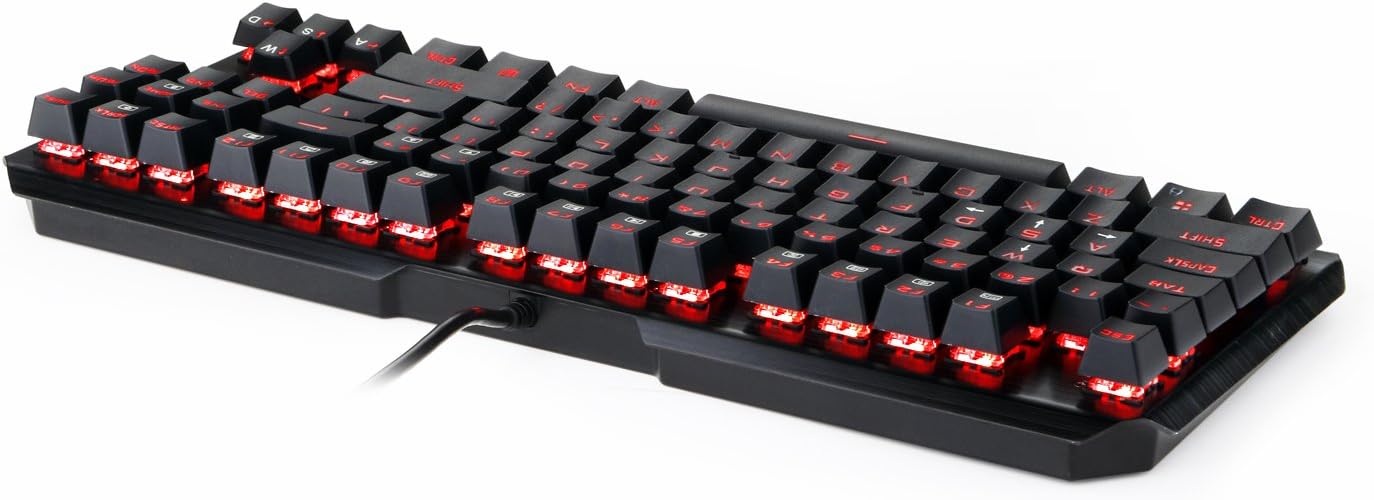 MECHANICAL KEYBOARD; K553 Redragon Red LED Backlit Mechanical Gaming Keyboard, the Led keyboard comes with Double-shot injection molded keycaps offering crystal clear uniform backlighting and lettering that doesn't scratch off.