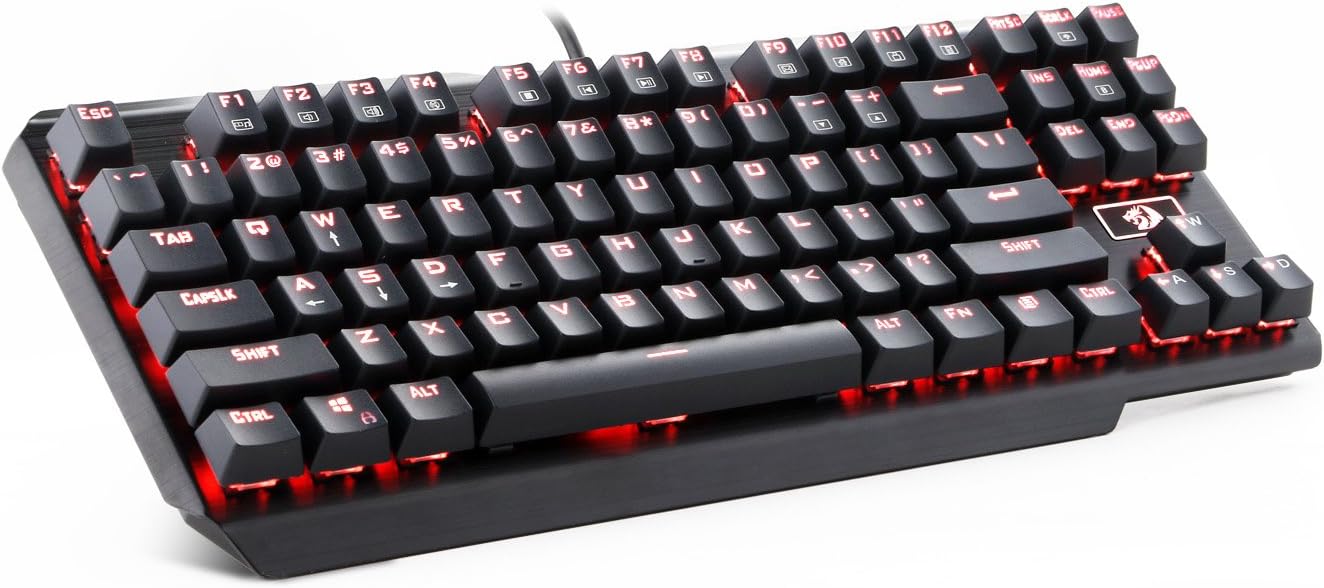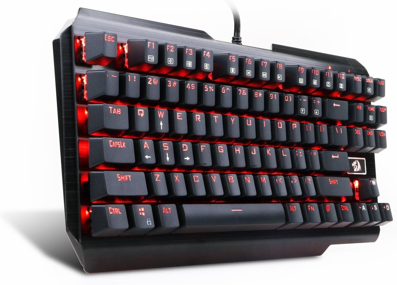 Gaming Keyboard Mechanical Keyboard K553 USAS by Redragon 87 Key Red LED Backlit Mechanical Computer illuminated Keyboard with Blue Switches for PC Gaming Compact ABS-Metal Design