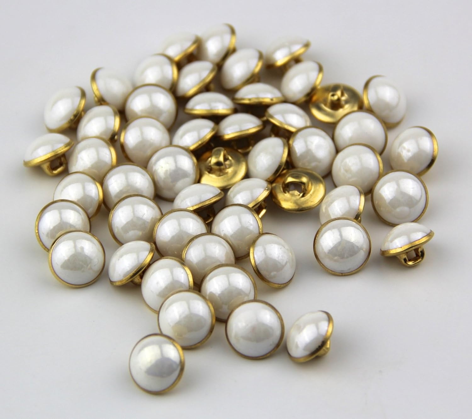 25Pcs Pearl White Half Resin Dome Cap Copper Base Crafting Sewing DIY Buttons-13mm