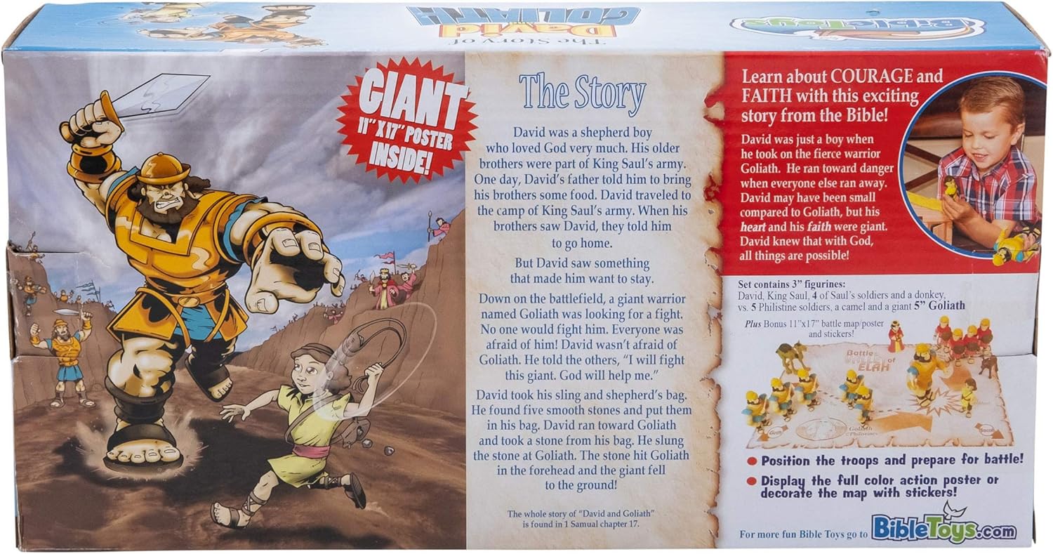 David was a man after Gods own heart. He did not fear anything because he trusted God to always protect him. Even when the giant soldier, Goliath, wanted to fight, David trusted God to keep him safe! (1 Samuel 17). Children can make this story come to life with our interactive David play set, featuring everything you need to help your child learn about this fascinating Tale of Glory.