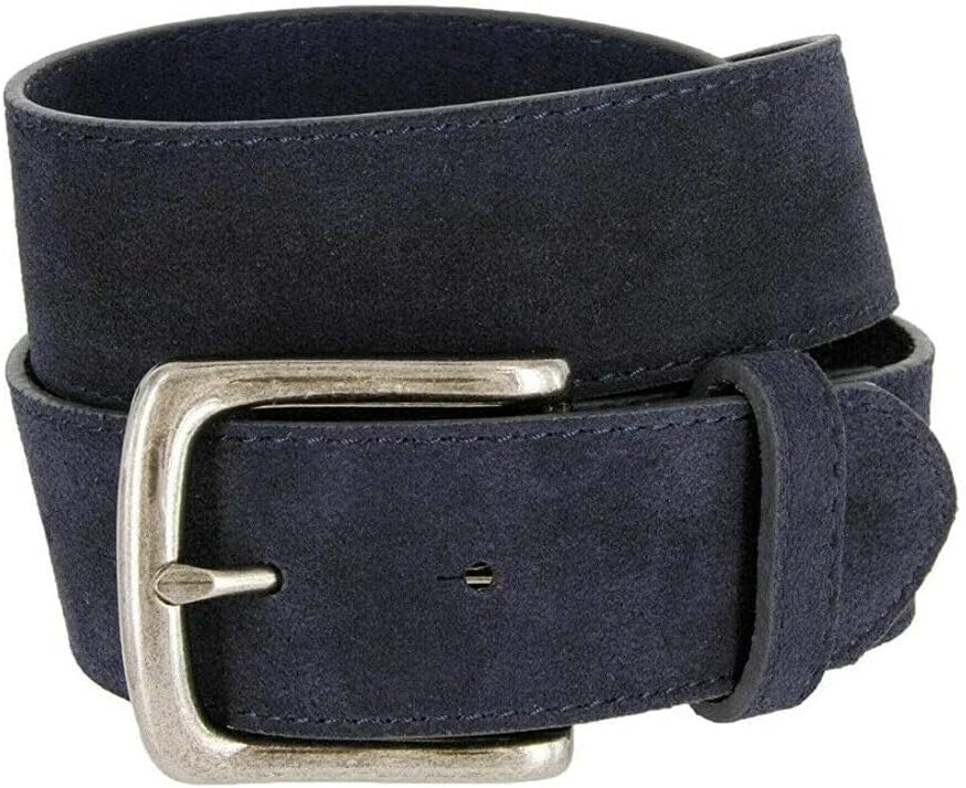 Rounded Edge & Antique Gold Oval Buckle Casual Jean Suede Leather Belt 1-1/2"(38mm) or 1"(25mm) Wide