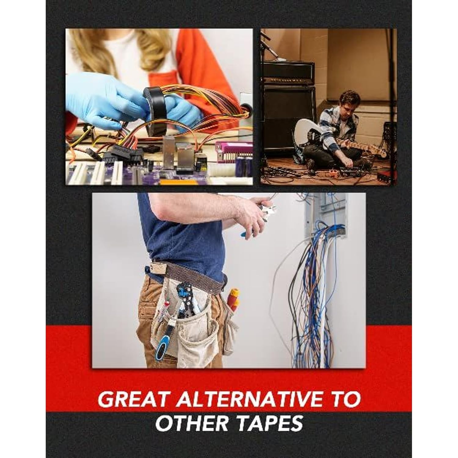Protege Equipo con Facilidad: Mantén tus equipos y cables seguros con esta cinta no reflectante, impermeable que es fácil de cortar, rasgar o desgarrar. Asegura un acabado limpio sin dejar residuos adhesivos, a diferencia de la cinta adhesiva negra