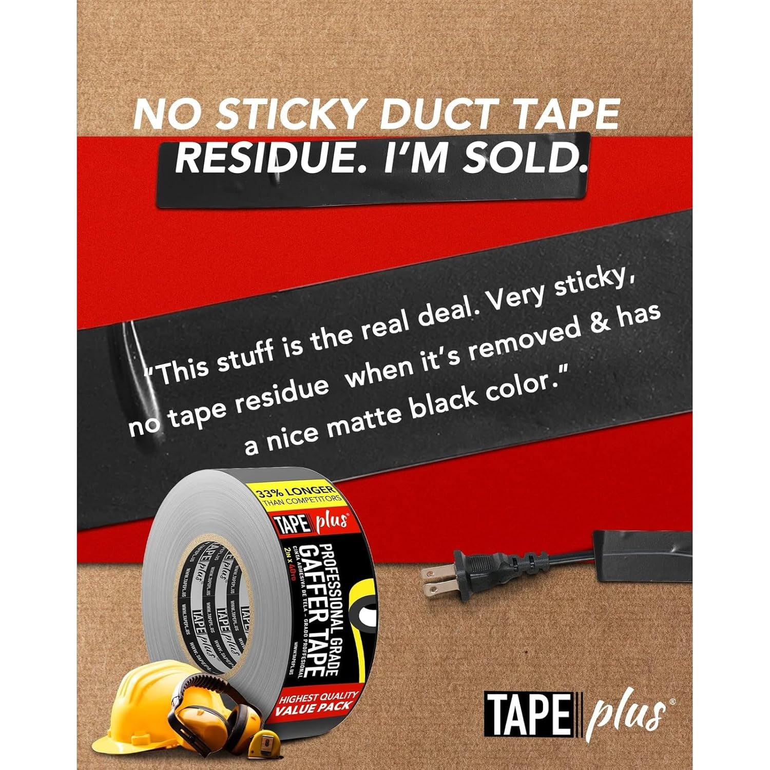 Cinta Gaffer - ¡Rollo Gigante! 2 Pulgadas x 40 Yardas (120 Pies) Cinta Negra - Cinta Gaffer Usada para Cinta Gaff, Cinta Adhesiva, Cinta Eléctrica, Cinta de Tela, Cinta para Pisos, Cinta para Encuadernación de Libros y Más