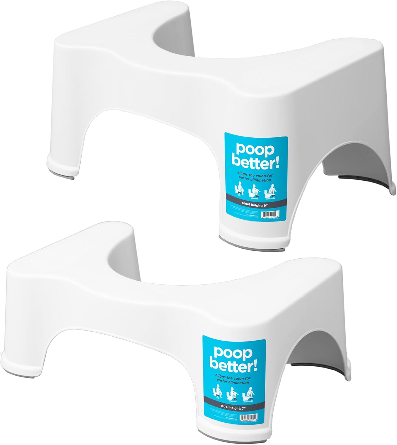 Squatty Potty The Original Bathroom Toilet Stool, 7 inch and 9 inch, White, (Pack of Two)