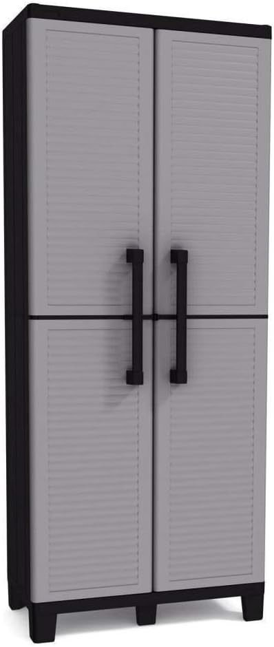 The Space Winner utility cabinet is perfect for those areas in and around the home that lack storage space. Even if your garage has shelves installed, you may need a more secure place to keep certain tools and other items. The Space Winner utility cabinet has sturdy doors, and a padlock can even be used to lock them closed. Thanks to its freestanding design, it can be placed just about anywhere. Measures 27" Wide x 15" Deep x 67" Tall Polypropylene resin construction is easy to maintain and won't peel, dent or rust 4 adjustable shelves can be configured to suit a variety of storage needs Load per shelf 44 lbs Doors can be padlocked shut; padlock not included Compact design makes it suitable for use in space-challenged areas