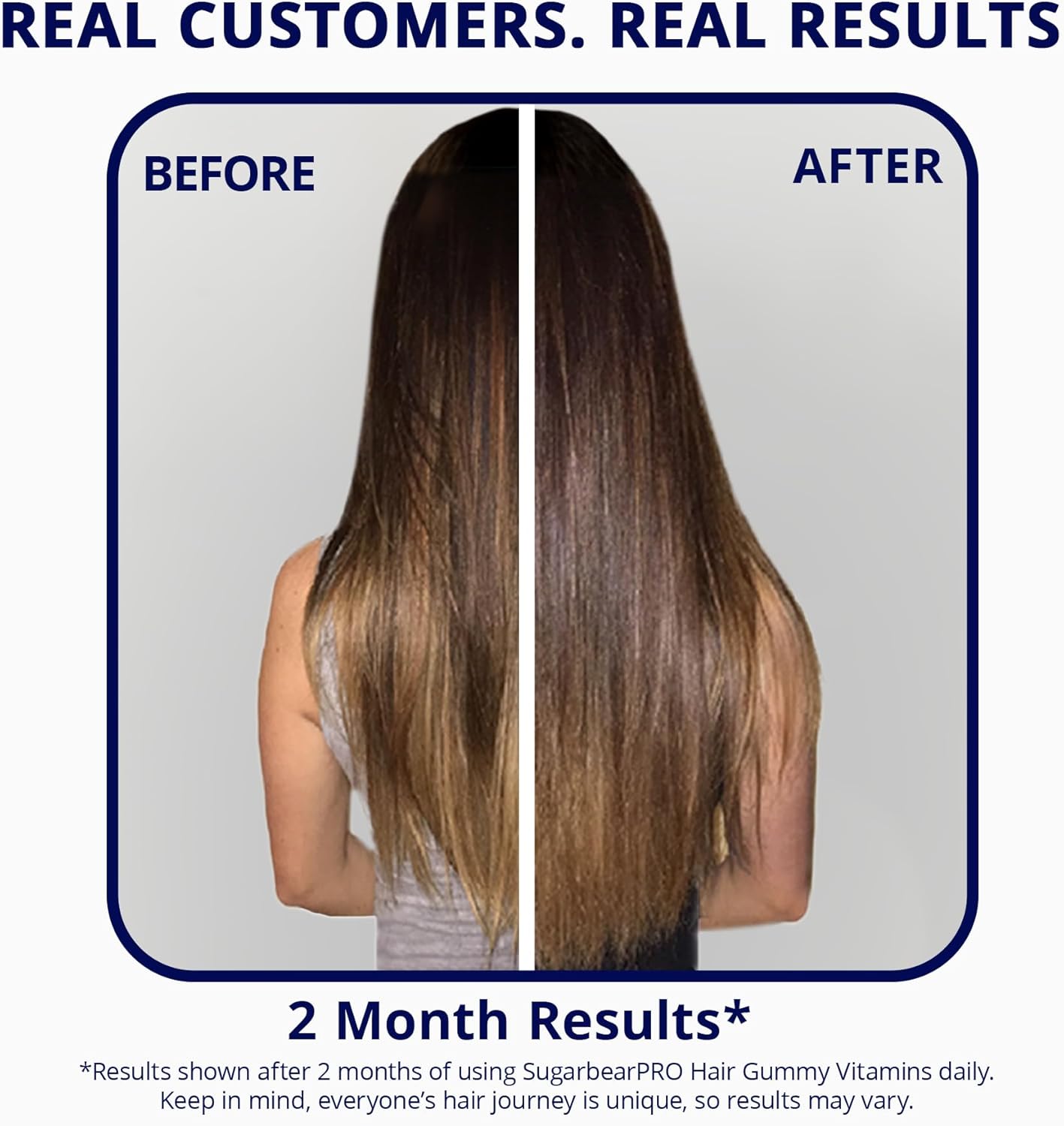 Vitamina de Gomita para el Cabello Sugarbear 2 Meses de Suministro Extra Fuerte Biotina 6000mcg, Crecimiento para Hombres y Mujeres, Vitamina B12 Vegana, MSM, Inositol, Omega 3, Saúco, Certificado Kosher, Halal, Libre de Crueldad