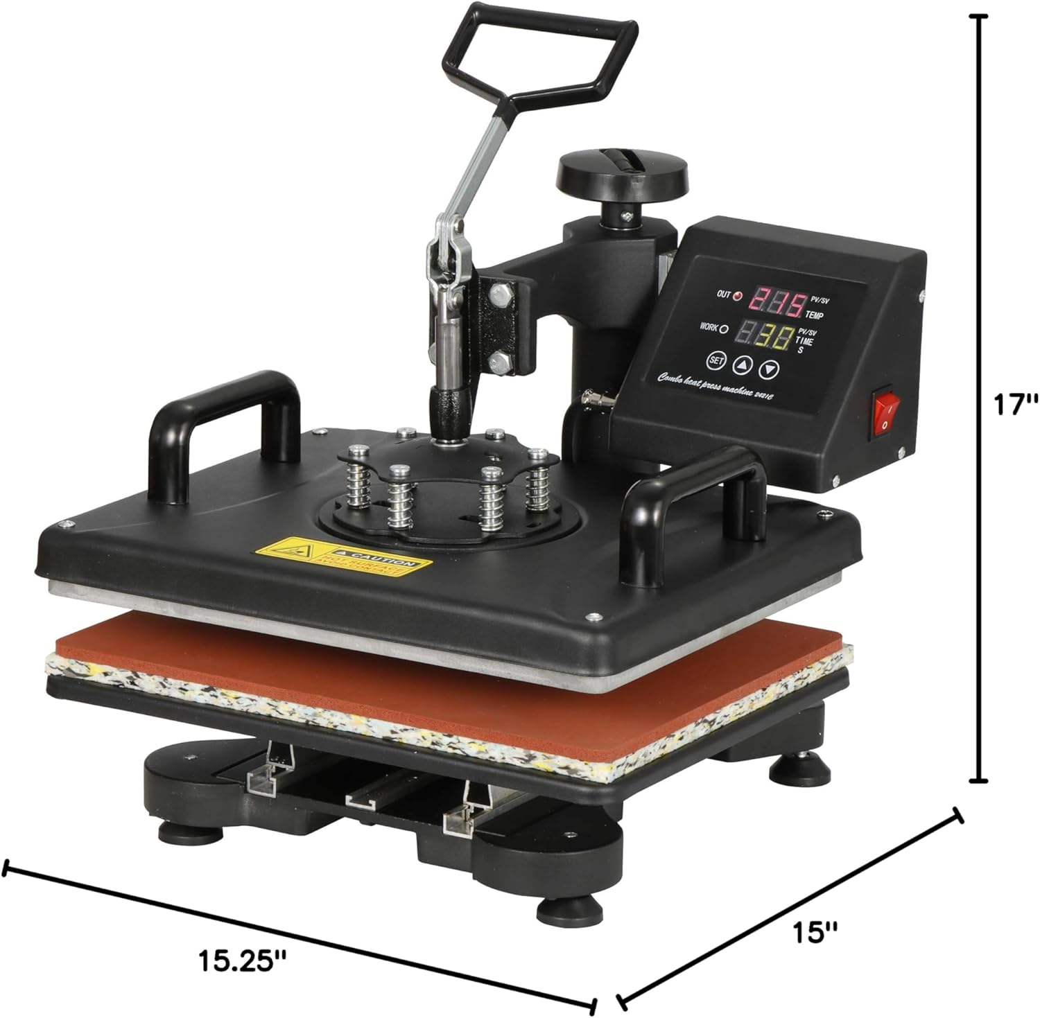 prensa de calentamiento grande de 12 «x 15" proporciona una gran superficie para crear su propia camiseta personalizada, etc. Puede transferir imágenes coloridas y caracteres de tinta de impresión sublimada y disuelta en gafas y textiles como algodón, lino, fibra química, nailon, etc.