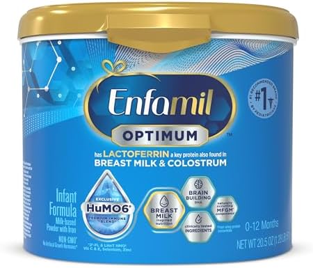 Fórmula para Bebé Enfamil Optimum, Nuestra Fórmula más Cercana a la Leche Materna, Lactoferrina de Apoyo Inmunológico también Encontrada en la Leche Materna, DHA para la Construcción del Cerebro, 20.5 Oz