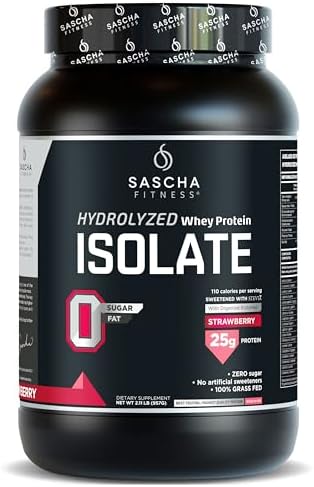 SASCHA FITNESS Hydrolyzed Whey Protein Isolate,100% Grass-Fed (2 Pounds, Strawberry)