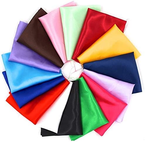 RayLineDo® 15pcs 25 * 20cm Silky Satin Patchwork Fabric Bundle Quilting Wedding Table Decor in 15 Solid Color