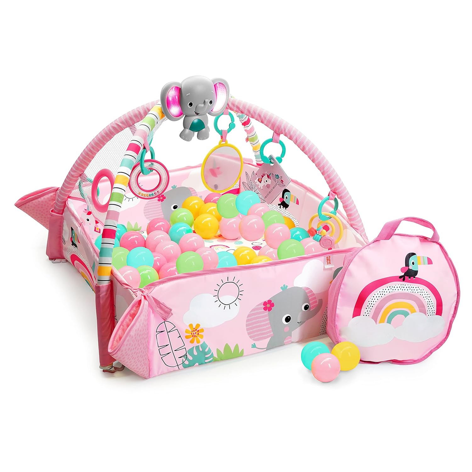 Bright Starts 5-in-1 Your Way Ball Play Baby Activity Play Gym & Ball Pit, Includes 7 Toys, Newborn to Toddler - Rainbow Tropics (Pink)