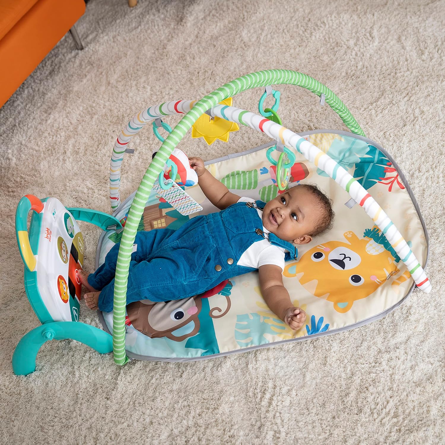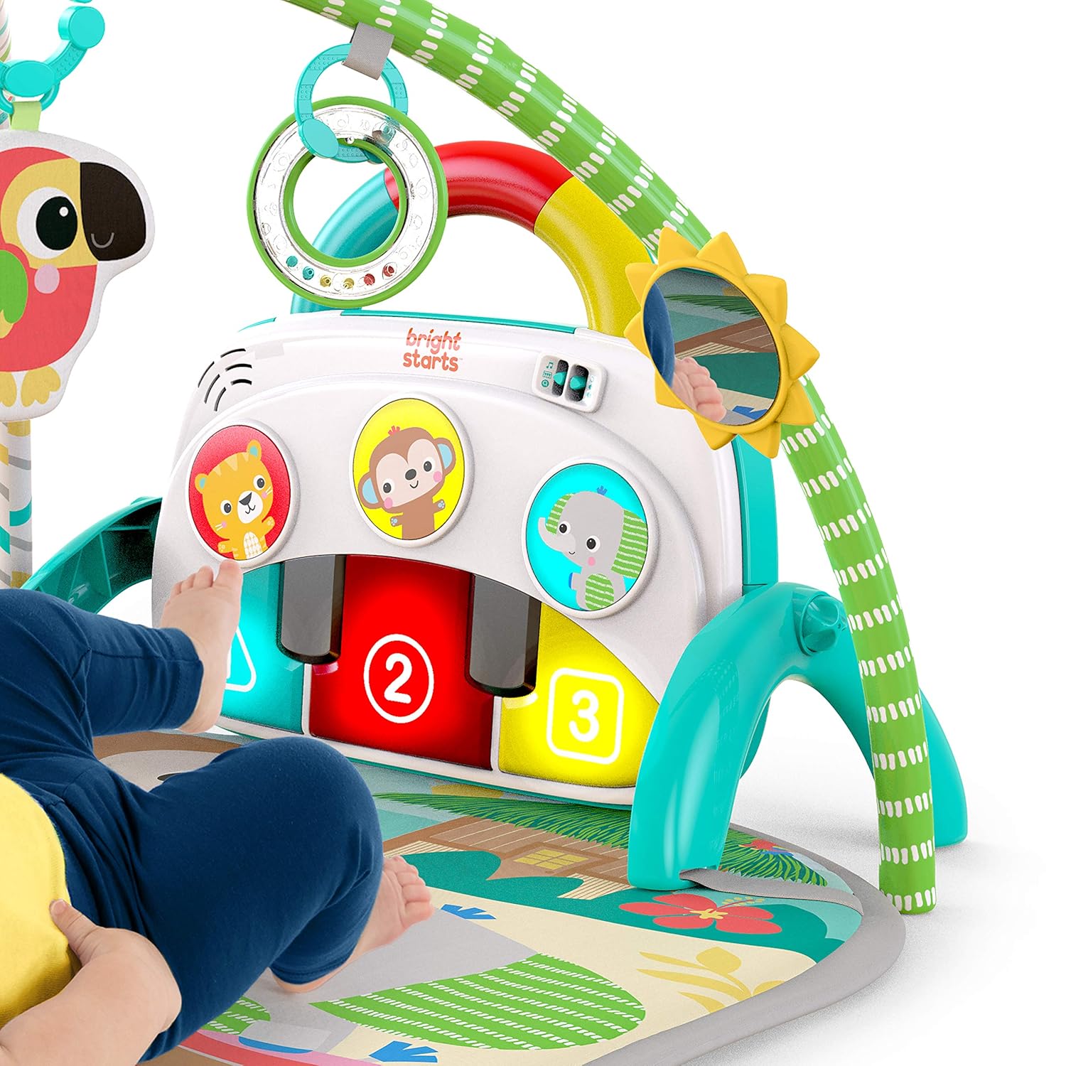 Bright Starts 4-in-1 Groovin’ Kicks Piano Gym, Tummy Time Play Mat & Activity Baby Toys, Green - Tropical Safari, Newborn to Toddler