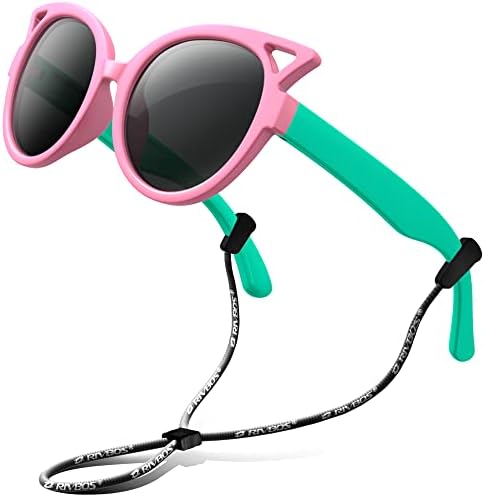Gafas de sol RIVBOS para niños Niñas con correa Polarizadas con protección UV Flexibles para bebés y niños de 2 a 10 años RBK002-2 Rosa y Verde