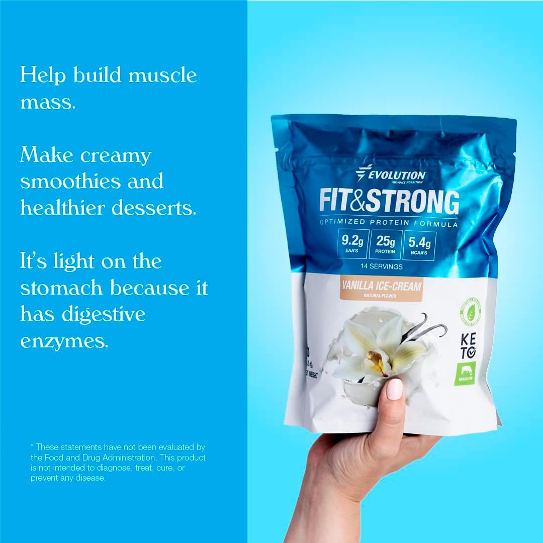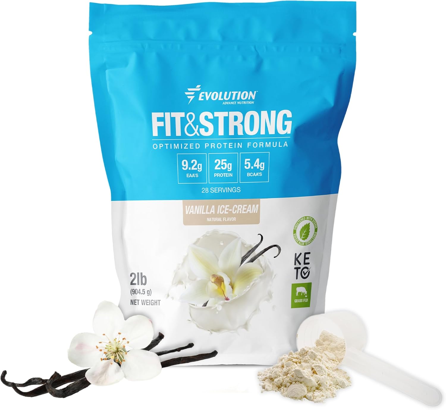 Evolution Advance Nutrition Fit & Strong - Pure Whey Protein Powder with BCAA, 100% Grass-Fed, Quick Absorbing and Fast Digesting for Optimal Muscle Recovery, Natural Flavor – 2 Pounds (Vanilla)
