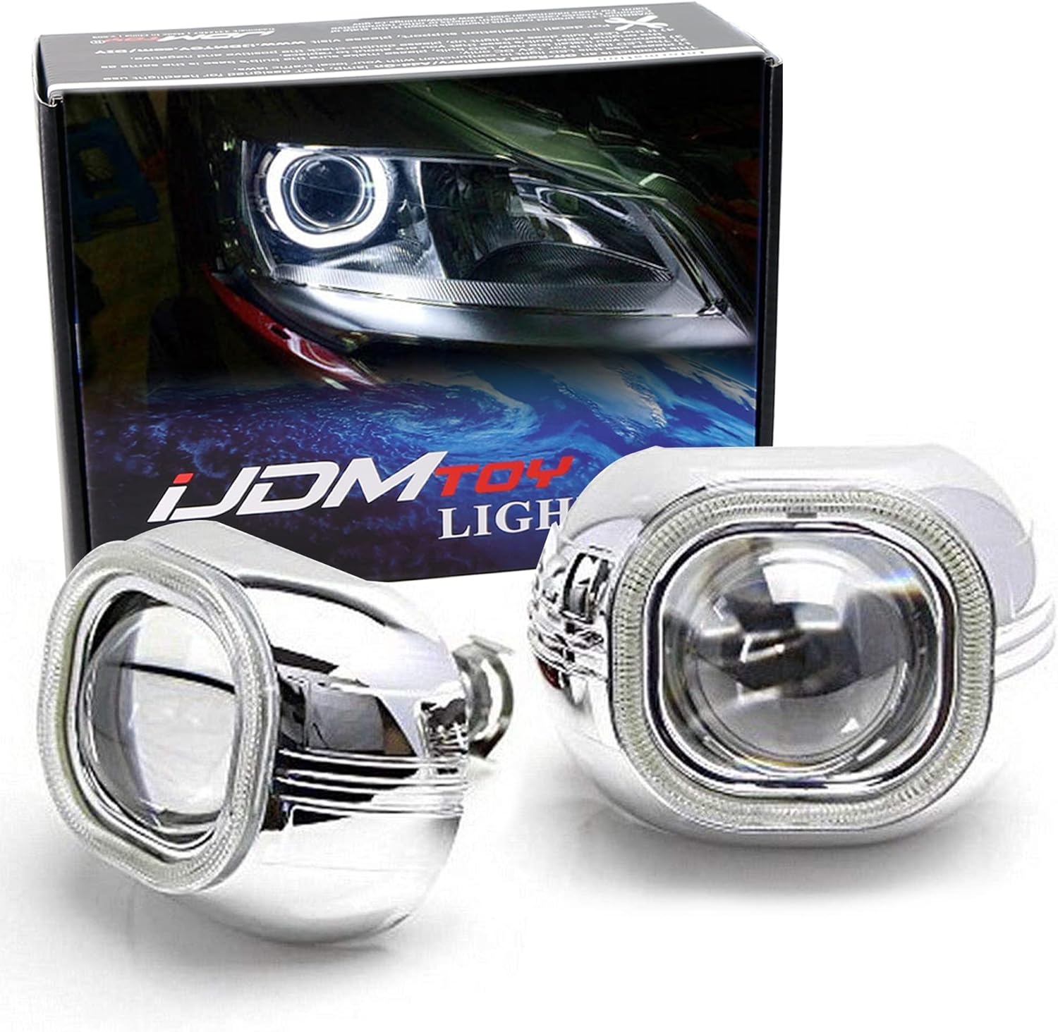 iJDMTOY 3.0-Inch H1 Bi-Xenon Front Lighting Projector Lens w/Xenon White Square LED Halo Ring Shrouds Compatible with Light Retrofit, Custom Front Lightings Conversion
