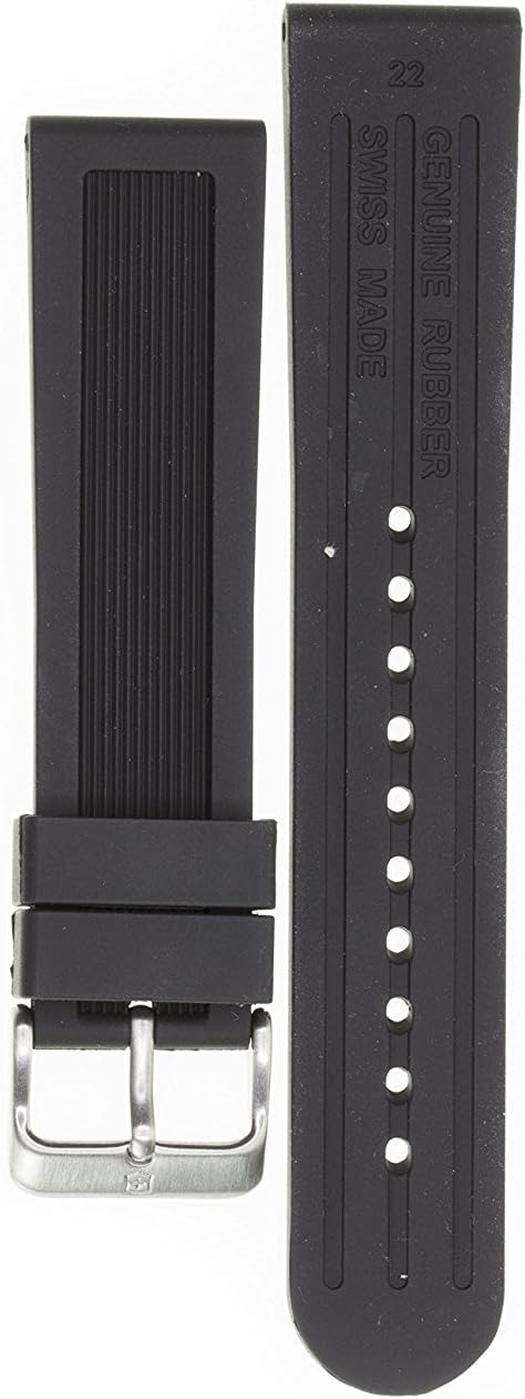 Correa de Caucho Nueva de Victorinox Color Negro Tamaño/Ancho: 22mm Hebilla de Acero Inoxidable Cepillo Plateado