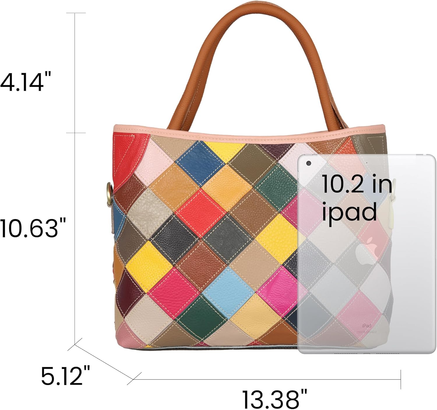HESHE Genuine Leather Handbags Colorful Purses for Women Crossbody Bag Multi-color Tote Purse Designer Hobo Shoulder Bag
