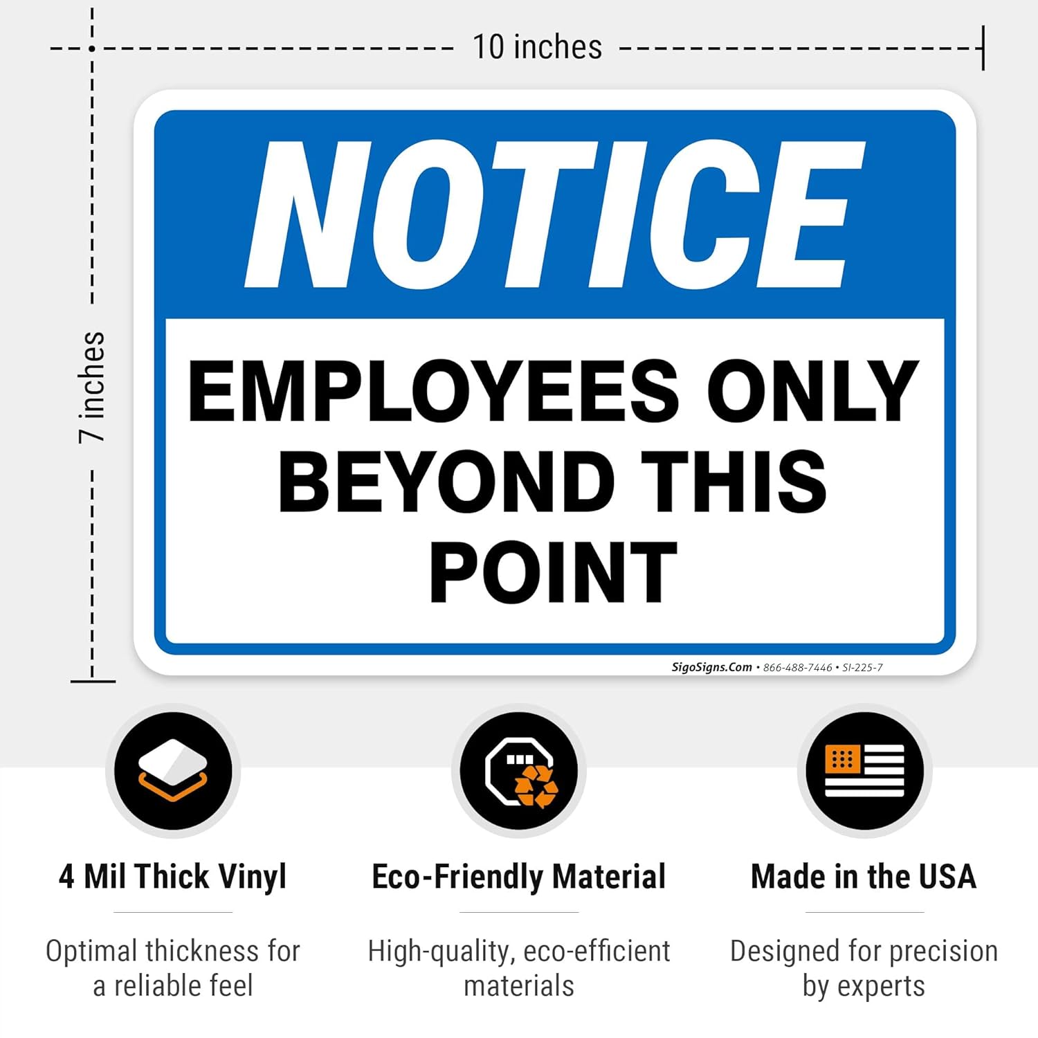 Sigo Signs - Employees Only Sign, Employees Only Beyond This Point Sign, (2 Pack) 10x7 4 Mil Vinyl Stickers, Weatherproof and UV Protected, Made in USA by Sigo Signs