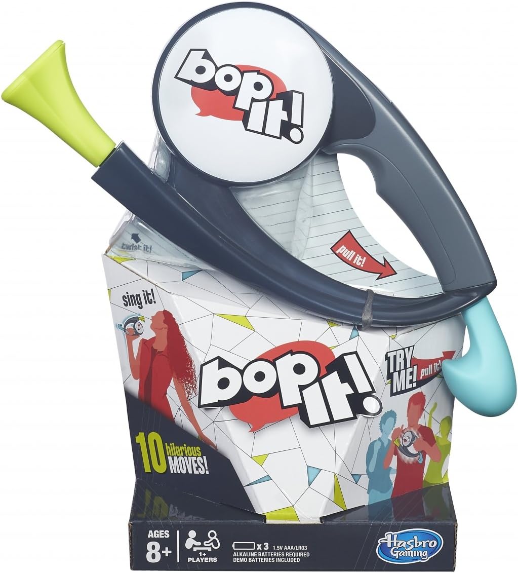 ¡Gíralo! ¡Bp it! ¿Responderla? ¿Lo selfies? ¿Martillarlo? Esta actualización de Bop It! se ha mejorado con el nuevo juego Bop It! orientado a la acción movimientos para los jugadores modernos de hoy en día. ¡Bop It! utiliza la tecnología move it motion para poner a prueba a los jugadores y ver si tienen las habilidades para dominar Bop It! juego. Los diez movimientos son: azotarlo, beberlo, selfiarlo, martillarlo, responderlo, acunarlo, verlo, cantarlo, jugar al golf y peinarlo. La aplicación Bop It! game es un juego portátil para divertirse sobre la marcha. Cuenta con 3 opciones de juego en solitario y social: Clásico, Beat Box y Pass It. Para uno o más jugadores.