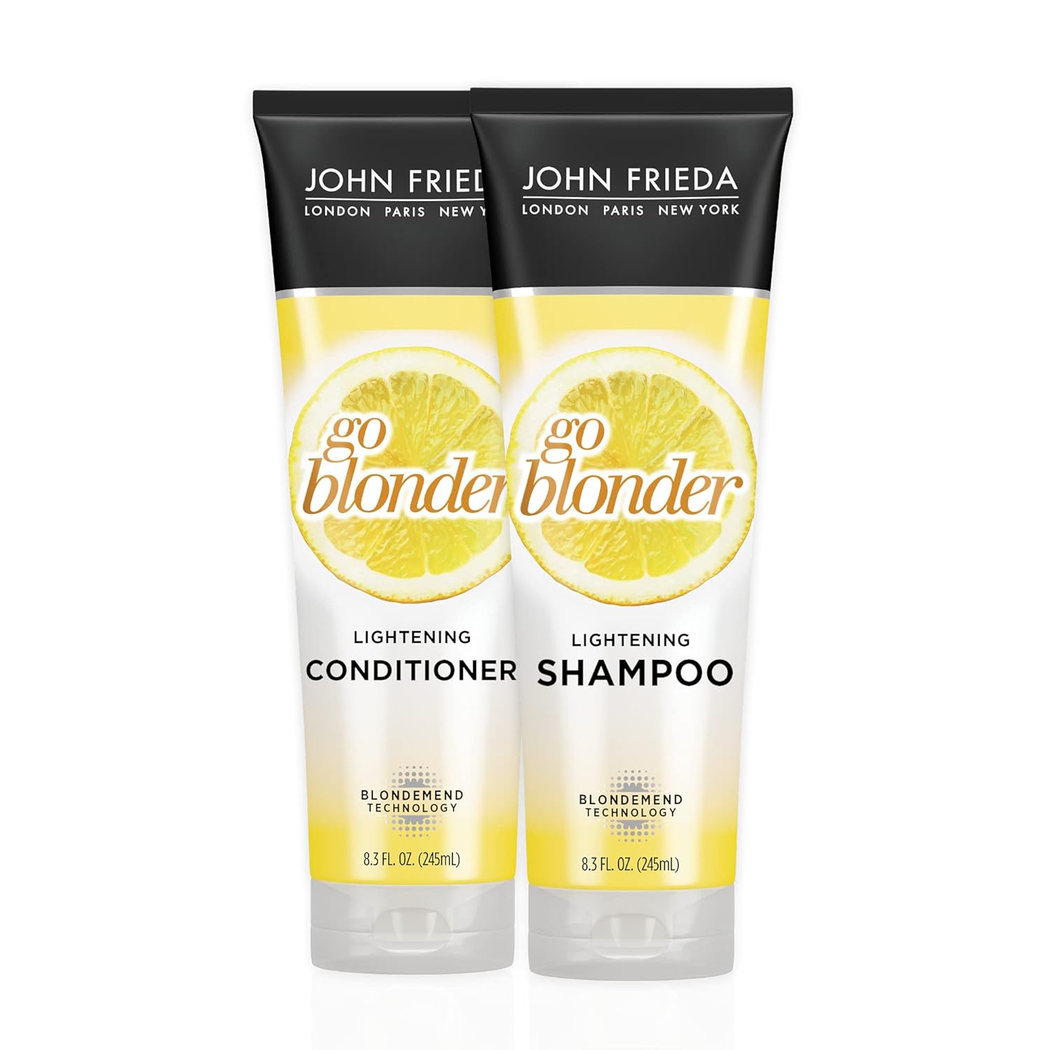 Champú y acondicionador John Frieda Sheer Blonde Go Blonder Set, 8.3 onzas de aclarado gradual, tratamiento de aclarado en ducha, para cabello natural o teñido, con cítricos y manzanilla