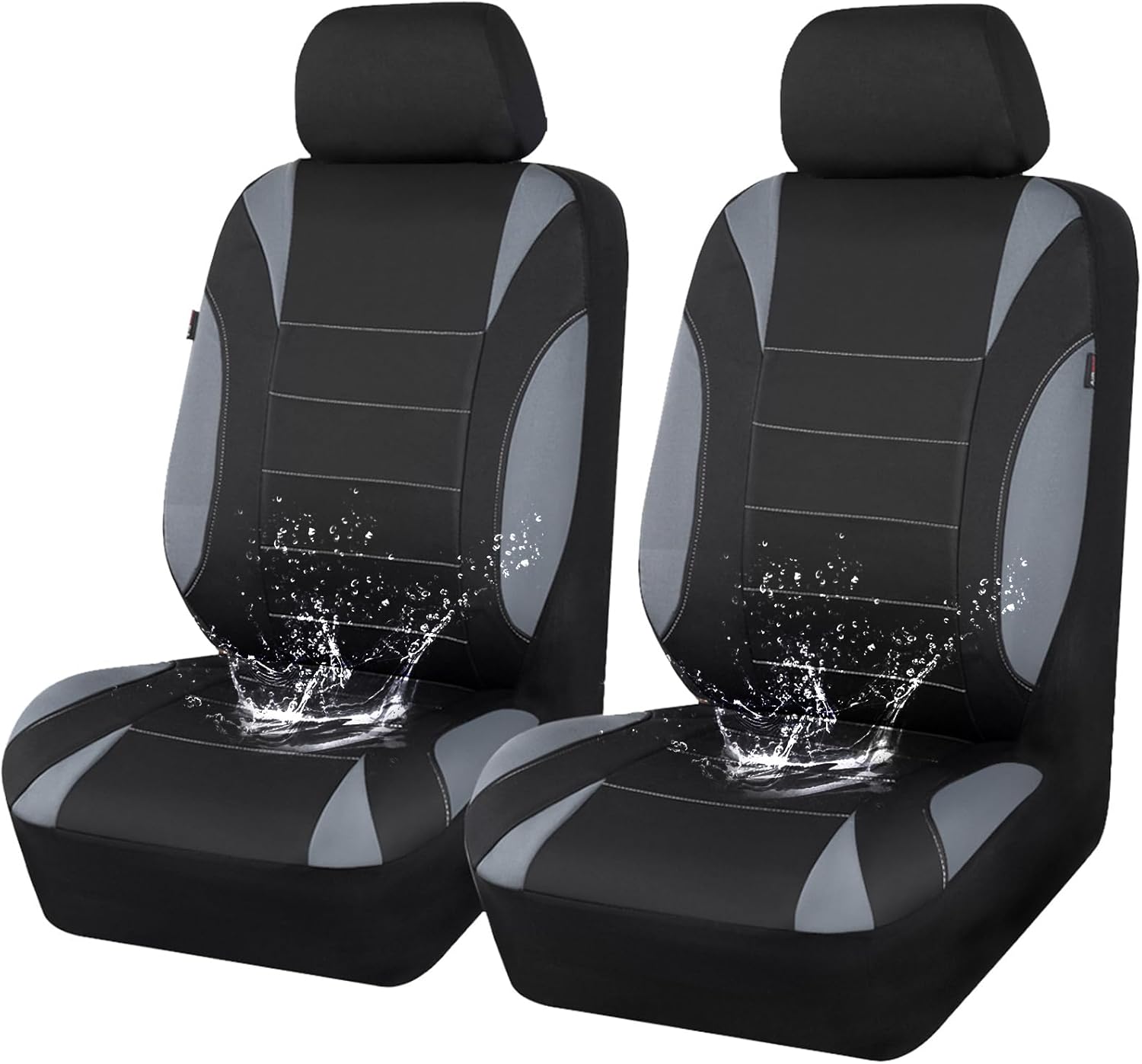 CAR PASS Waterproof Car Seat Covers Front Seats Only with 5mm Composite EVA, Neoprene Car Seat Cover with Separate Headrest Cover, Quick Setup Universal Fit for Car SUV Trucks,Airbag Compatible(Gray
