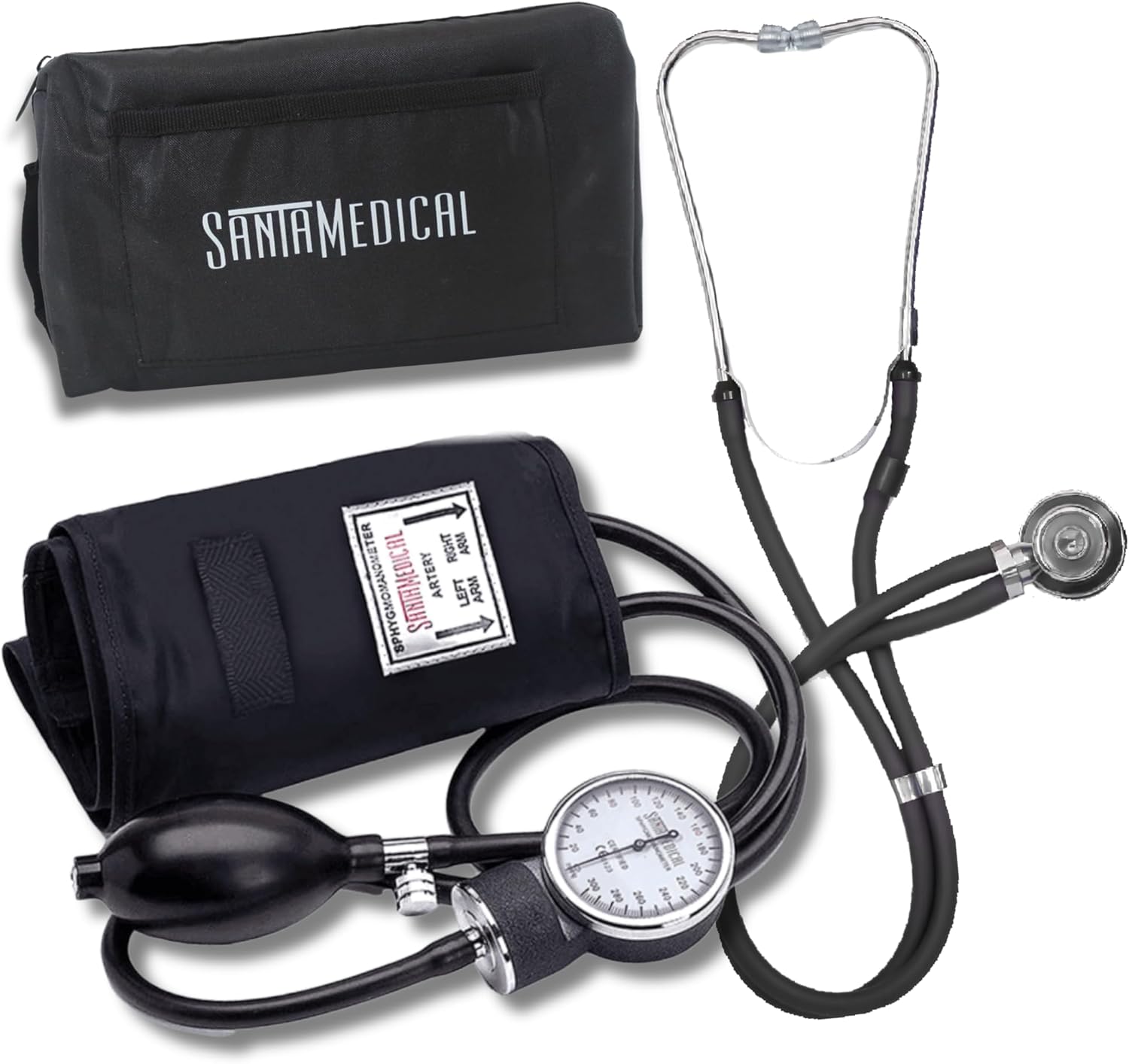 Santamedical Adult Deluxe Aneroid Sphygmomanometer with Stethoscope - Blood Pressure Cuff Durable and Carrying Case - Manual Blood Pressure Cuff Black