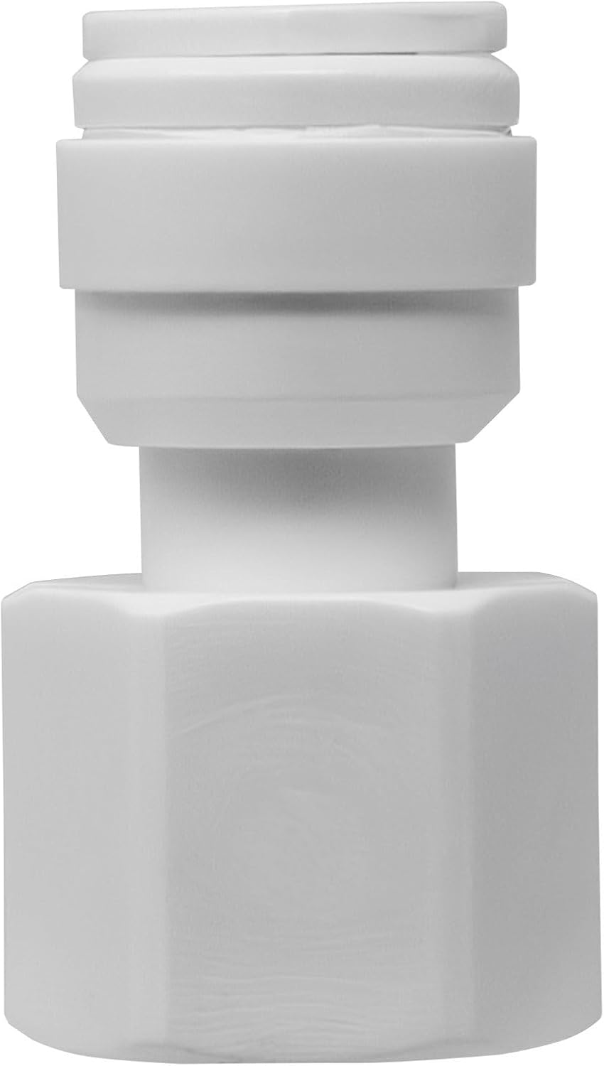 This NSF certified RO faucet quick connect adapter is made with high quality and food grade virgin polypropylene and equipped with EPDM O-ring for handling drinkable water. This reusable and durable adapter is a must have fitting for all RO faucet installation. Rated at 150 psi at 70°F and 60 psi at 140°F.