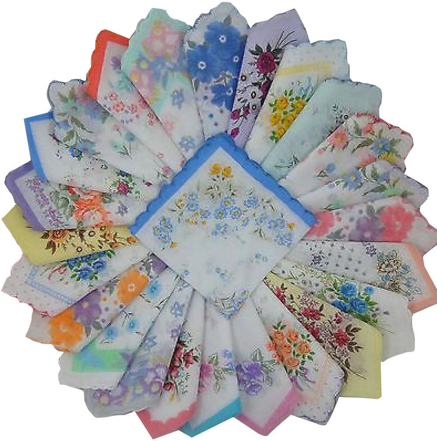 Forlisea Womens Colorful Ladies Hankies 100% Cotton Handkerchief Wendding Hanky