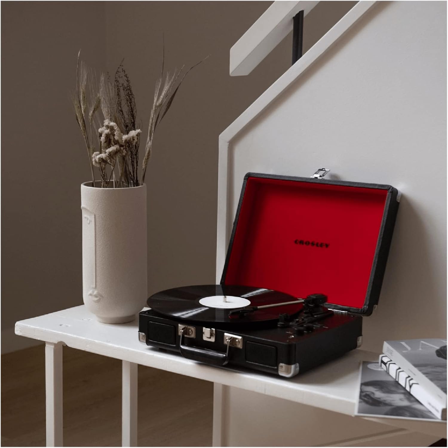 ¿Te encanta el sonido rico y cálido del vinilo, pero te gustaría que fuera un formato de música más portátil? moviliza tu música con el tocadiscos portátil de tres velocidades Crosley Cruiser. Construido en madera y encuadernado en un material de piel sintética, el tocadiscos tipo maletín es liviano y se transporta fácilmente de un lugar a otro. Los altavoces estéreo integrados te permiten escuchar tu música sin tener que conectarla a un sistema de altavoces, para que puedas ir a casa de un amigo y disfrutar juntos del sonido superior del vinilo. El control de tono ajustable te permite personalizar tu experiencia de escucha. También cuenta con Bluetooth integrado, que te permite transmitir tu música favorita desde un dispositivo con Bluetooth de forma inalámbrica a los altavoces dinámicos de rango completo del Cruiser.