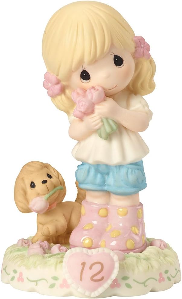 In celebration of 12 happy years this little darling picks a perfect bouquet with the help of her faithful pup. This birthday present is a thoughtful way to show her how much you adore her playful and loving spirit. Part of the growing in grace Figurine series, it is a gift that honors her final pre-teen year. Look for other pieces in the series, available in blonde and brunette styles, to celebrate all of her Birthdays through age 16. An artful birthday gift, it is meticulously crafted of fine bisque porcelain and expertly hand painted. Approximately 5 inches high.