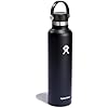 BOTELLA DE AGUA DE 24 OZ NEGRO: Llena y rellena con la botella de agua aislada Hydro Flask Standard Mouth con tapa hermética. Con un cómodo y flexible mango, la botella es fácil de agarrar y llevar a cualquier parte. El aislamiento de doble pared mantiene las bebidas frías hasta 24 horas y calientes durante 12.