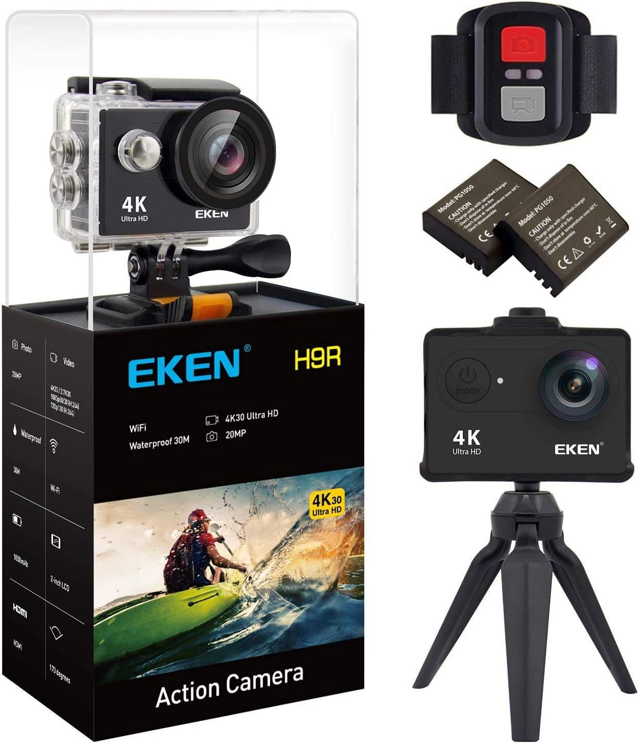 Nueva cámara de acción EKEN H9R, 4K, WiFi, impermeable, deportiva, Full HD, 4K30, 2.7K30, 1080p60, 720p120, cámara de vídeo de 20 MP para fotos y lente gran angular de 170 MP, incluye 11 kits de montaje, 2 baterías, color negro