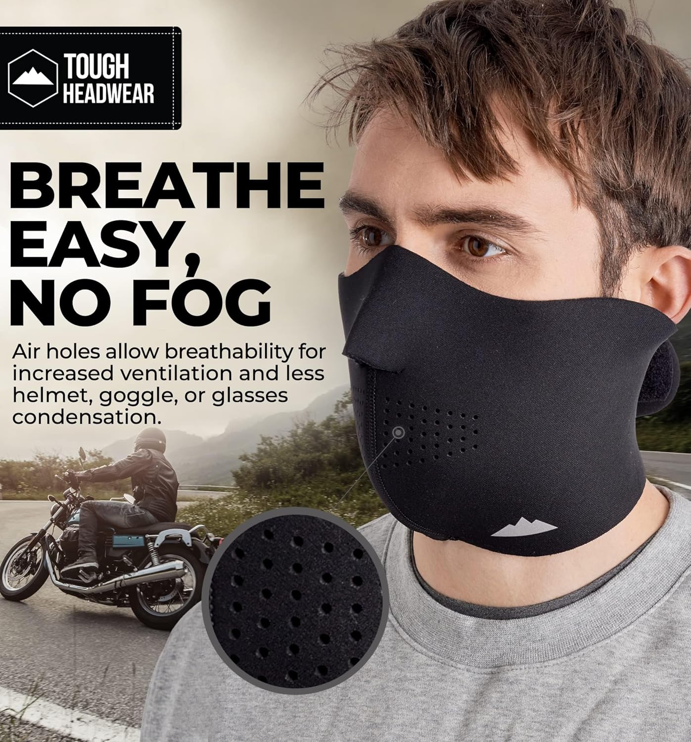 VISIBILIDAD SIN NIEBLA: una máscara facial para invierno que no se empaña y que cumple su función. Con ventilación alrededor de la nariz y la boca, la máscara Hawk Rider es transpirable para que puedas llevártela puesta todo el día, sin retener la humedad y sin empañar las gafas o el casco al salir a la carretera, los senderos o el pavimento. Por fin, ¡mascarillas de moto para hombre que hacen lo que se supone que deben hacer! APTA