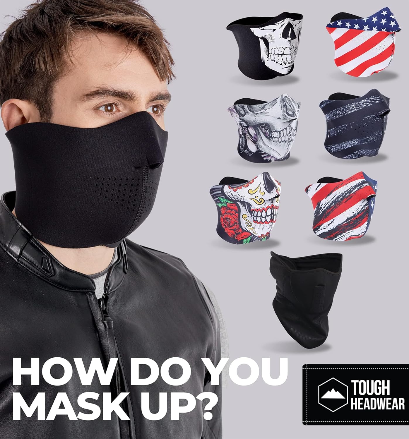 PARA CASCOS: gracias a su perfil ajustado, nuestra máscara de moto es perfecta para llevarla cómodamente debajo de todo tipo de cascos y sombreros: para ir en moto, trabajar al aire libre, andar en monopatín, andar en bicicleta o en vehículos todo terreno, ahí vamos.