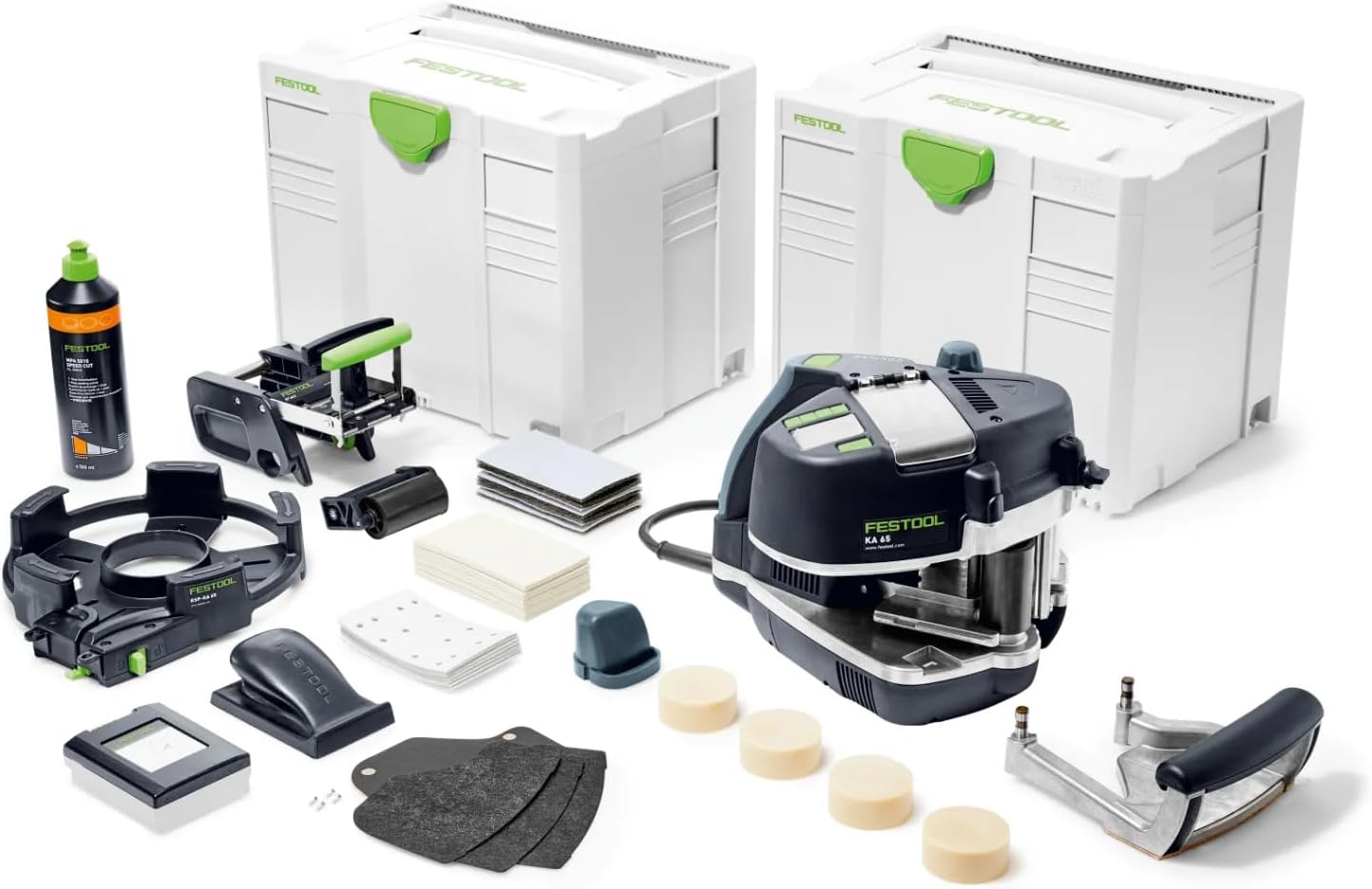 Festool brings their revolutionary design genius to edge banding with a systems-based approach centered on a hot melt edge bander - the KA 65 Conturo. Engineered to provide a single, easily-portable solution for creating the perfect edge on a variety of furniture designs, cabinets, casework and other work pieces, the CONTURO easily edges straight surfaces, curves, radii, convex and concave shapes, as well as internal corners. With the CONTURO Edge Bander, it's just as easy to apply edge banding on the job site as it is in the shop. Even if you have a large stationary edge banding machine, the CONTURO can complement your edge banding process by giving you a way to work with radii, circular pieces, bevels and small pieces. The CONTURO offers exceptional ergonomic design, including dual speeds, and a unique hot melt glue adhesive system. There's no risk of burns because the glue system is thermally isolated. Ditch the iron or hot air gun to and gain the benefits of a dedicated edge banding machine without the cost associated with stationary equipment. The CONTURO is suitable for machining all types of wood, plastic or melamine edging and can accommodate banding with a height of 18-65 mm (23/32" - 2-9/16") and thickness of 0.5-3.0 mm (1/32"-1/8"), and handles curved edges with an inside radius as tight as 2". The system features a self-contained glue cartridge system that eliminates glue-pot related hassles while enabling rapid color changes. This system is further supported by an additional MFK Trim Router model (#574456, sold separately) with a new edge trimming base, matched radius router bits, a wide assortment of edge finishing accessories and even a new MFT table for stationary use. To make it even easier for you to gain the perfect edge, both the Edge Bander and the KB-KA 65 Accessory Kit (#500177) are teamed together in this Set.