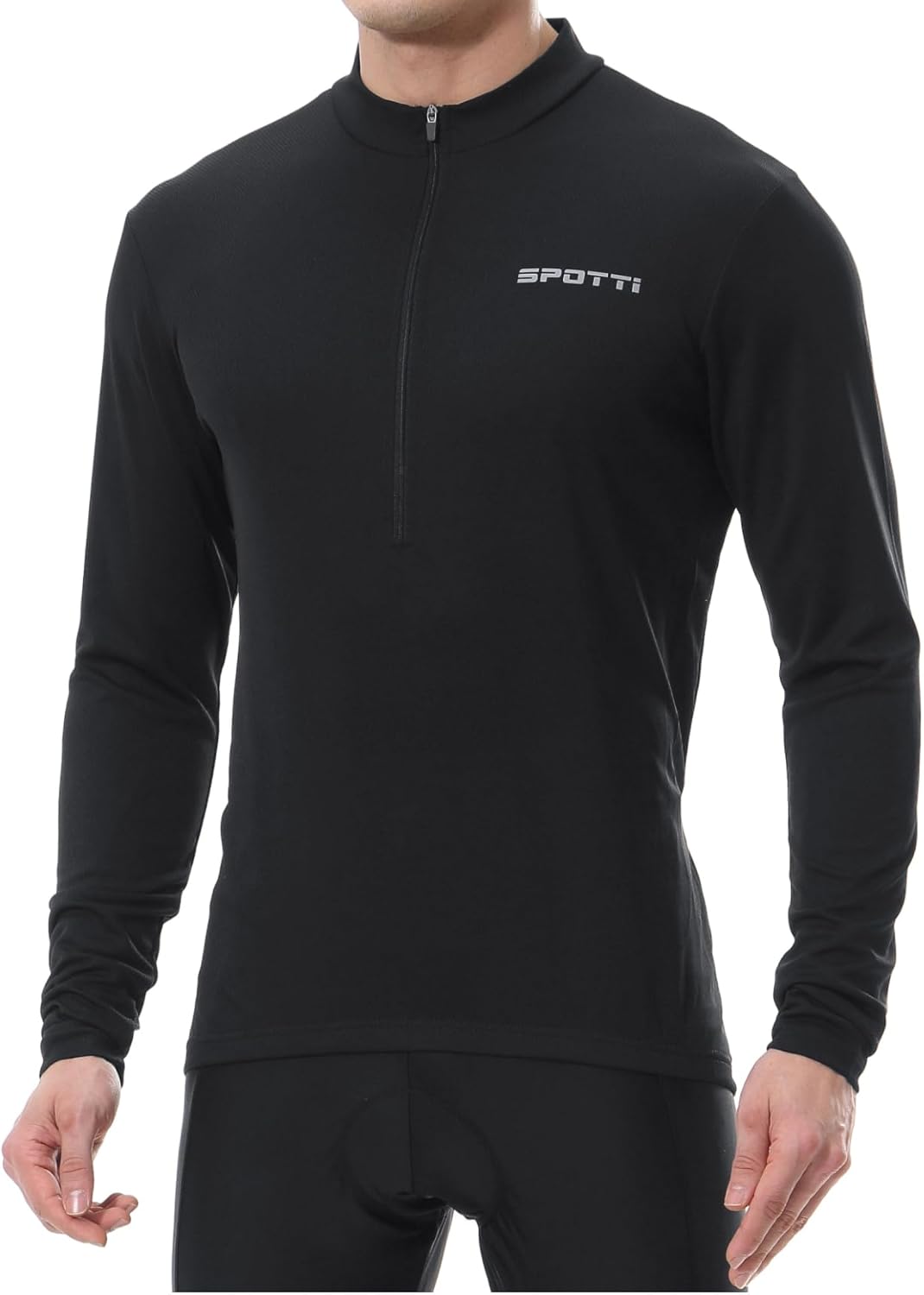 Spotti Men's Cycling Bike Jersey Long Sleeve with 3 Rear Pockets - Moisture Wicking, Breathable, Quick Dry Biking Shirt