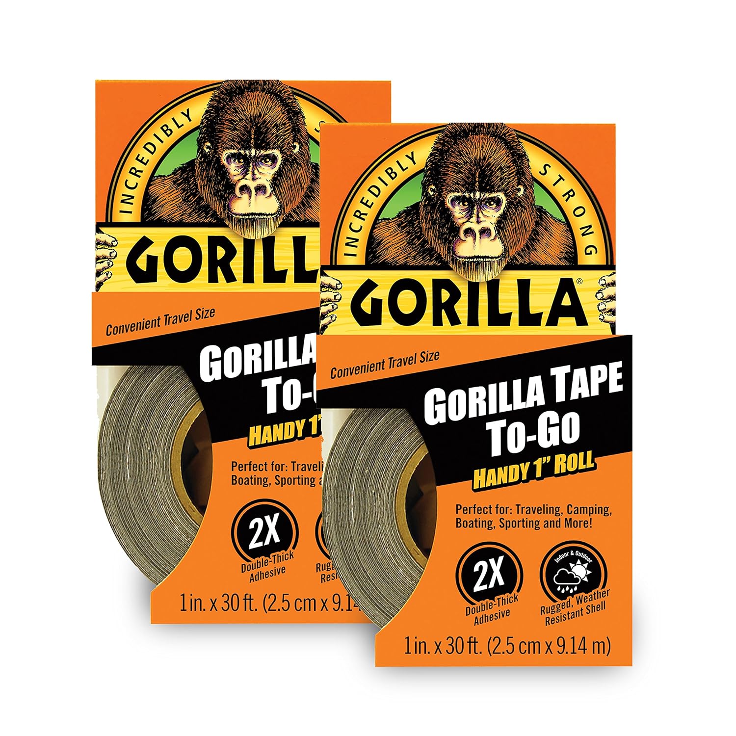 Convenient for on-the-go repairs, Gorilla Tape To-Go's 1 inch width packs a powerful grip in a portable size. With double-thick adhesive, tough reinforced backing and rugged weather-resistant shell, it sticks to rough and uneven surfaces, including wood, stone, stucco and brick, that ordinary tapes can't hold.  This size is ideal size for backpacks, toolboxes, glove compartments for camping, boating and more! Directions: Use like any other tape. Tear Gorilla Tape by hand or cut to size with a knife or scissors. It is important to clean the surface and brush off any loose particles and dirt before applying Gorilla Tape. Apply the tape carefully, smoothing out any pockets or rolls. That’s it. Enjoy the strength and durability of Gorilla Tape! To retain adhesive quality, store Gorilla Tape in a cool, dry place. Keep out of direct sunlight. Try storing the tape vertically (rather than laying flat), on a hook or on wax paper. If you have multiple rolls, keep your excess supply wrapped until they’re needed. Gorilla Tape works best at temperatures above 32°F (0°C). For best results, always apply the tape at room temperature. If Gorilla Tape freezes, it will work just fine once it returns to room temperature. Gorilla Tape can be removed, but with some difficulty and it may leave some residue. To remove any excess residue, we recommend using the tape itself as a blotter. Gorilla Tape should not be used as an electrical tape. We’ve found that Gorilla Tape will last a lot longer than regular duct tapes when it comes in contact with moisture. Click on the Gorilla link at the top of this page to see other quality products from the Gorilla Glue Company.