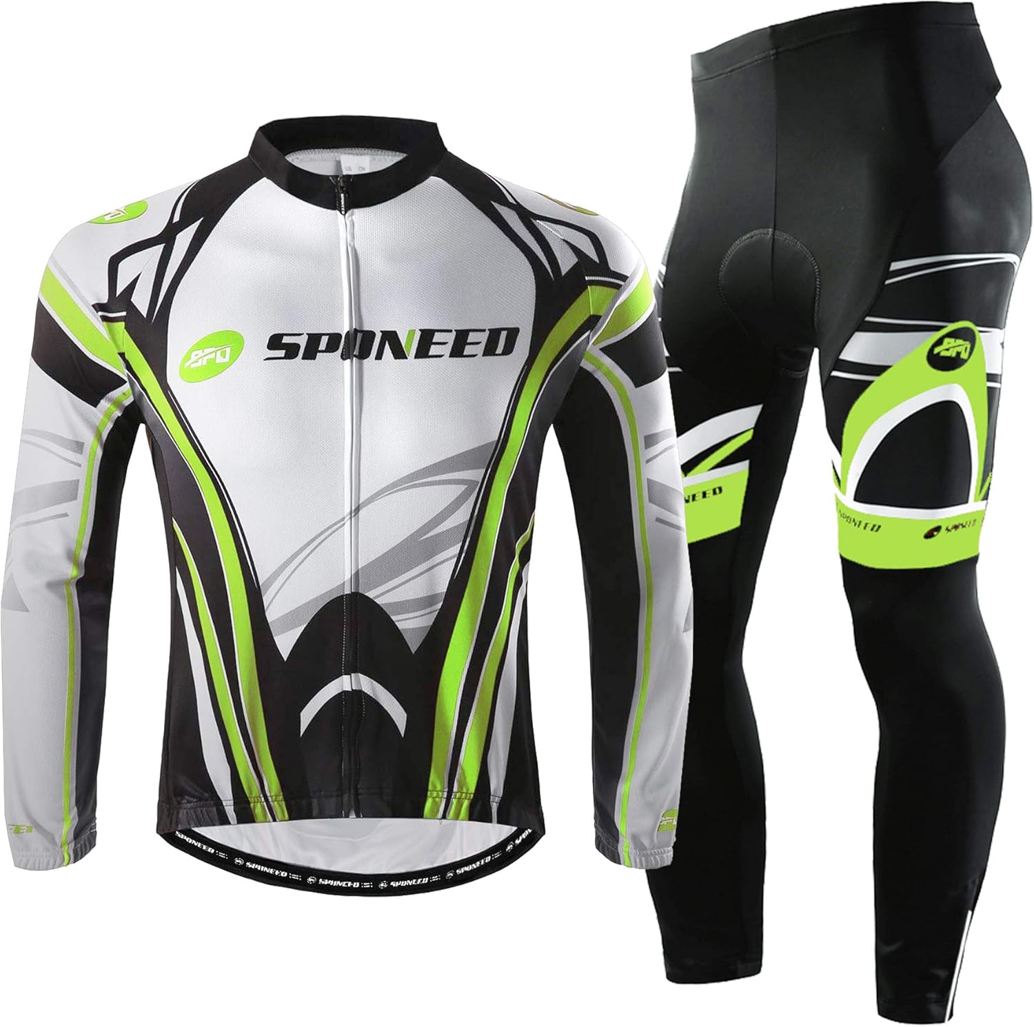 sponeed Cycling Clothes for Men Long Sleeve Mountain Bike Road Bicycle Shirt Jerseys Padded Pants Biking Outfits