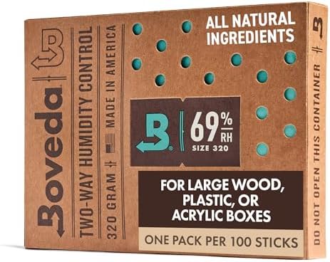 POR QUÉ ESTE BOVEDA: ¡Versatil! CONTROLA LA HUMEDAD EN CUALQUIER TAMAÑO DE CONTENEDOR. UN (1) Tamaño 320 = CINCO (5) Tamaño 60. El 69% de HR es el punto óptimo para almacenar productos premium en contenedores, enfriadores y gabinetes con clima controlado y enfriadores eléctricos que tienen bandejas y estantes de cedro español. Use un Tamaño 320 por cada 100 TOTAL de artículos que puede contener la caja humidificadora. INGREDIENTES NATURALES. ¡GARANTIZAMOS LA CALIDAD!