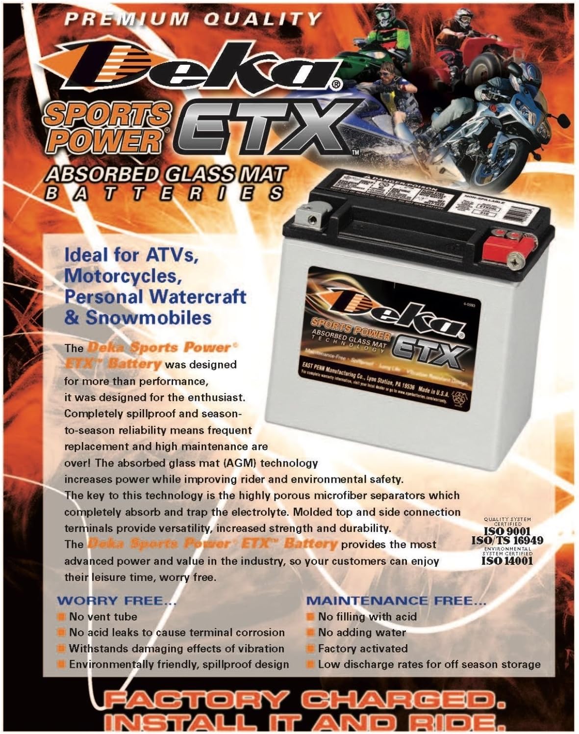 Genuine EastPenn Deka ETX20L PowerSport Battery, Made in USA
