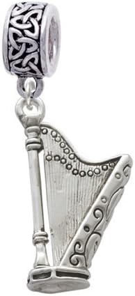 Silvertone Harp - Celtic Knot Charm Bead Hanger. Silvertone, hand enameled charms. Charm size is approx. 0.98 x 0.53 x 0.26 inches (HxWxD) including loop. Celtic Knot Charm Hanger Bead is approx. 11.5 x 7 x 11.5 mm (HxWxD). Our Charm Beads are compatible with most Charm Bead Bracelets. Also makes a great charms pendant. Featured charms is an exclusive Delight & Co. design. PLEASE NOTE: Our products are lead safe, but are not intended for children 14 years and younger.