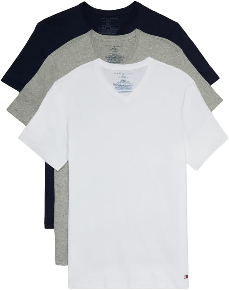 Tommy Hilfiger Hombres Manga Corta Clásico Paquete de 3 Camisas de Algodón