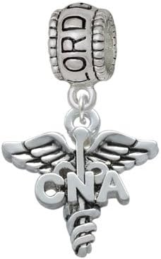 Silver Tone Nurse Caduceus - Lord Guide Me Charm Bead Hanger. Silver Tone, hand enameled charms. Charm size is approx. 0.741 x 0.7 x 0.13 inches (HxWxD) including loop. Available as Registered Nurse, Doctor of Nursing Practice, Certified Nursing Assistant, Licensed Practical Nurse, Licensed Vocational Nurse, Clinical Nurse Specialist, Bachelor of Science in Nursing, Registered Nurse Practitioner, Nurse Practitioner. Charm Hanger Bead is approx. 13x10x8 mm (HxWxD) Hole size 5.5 mm. Our Charm Beads are compatible with most Charm Bead Bracelets. Also makes a great charms pendant. Featured charms is an exclusive Delight & Co. design. We are a family owned company for over 35 years in the U.S.A. PLEASE NOTE: Our products are lead safe, but are not intended for children 14 years and younger.