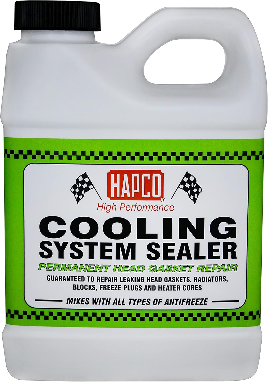 Hapco Cooling System Sealer is guaranteed to stop all head gasket, heater core, freeze plug, block and radiator leaks fast! It is easy to use and will not harm or clog any cooling system. Our original formula does not contain metal flakes and is compatible with all types of antifreeze. Specially formulated to permanently seal and protect against future leaks. For Best Results: Add one 16 oz. bottle of Cooling System Sealer into radiator. Start the engine and let it run 15 minutes or until the leak stops.