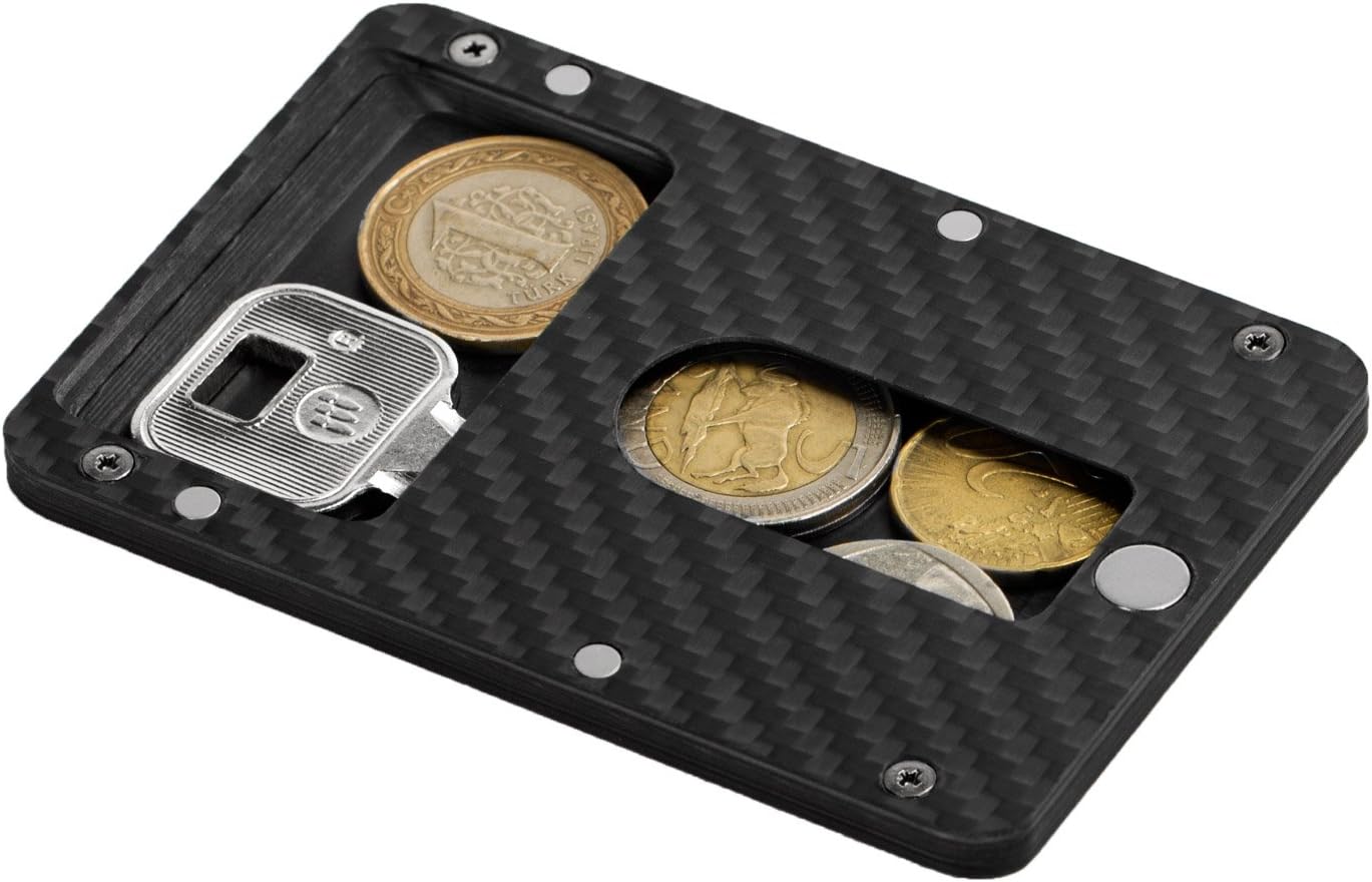 [Fibra de carbono duradera] La fibra de carbono duradera protege su efectivo y tarjetas con una estética elegante.