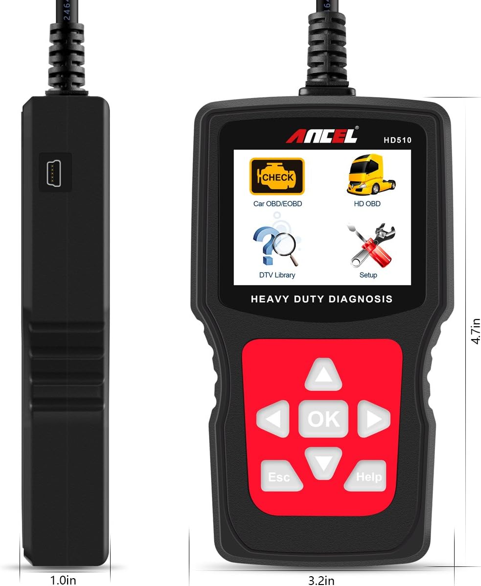 ANCEL HD510 Senior Check Engine Car OBD2 Diagnostic Code Reader Heavy Duty Truck HOBD Scanner with Mode 6 and Battery Status Check Function