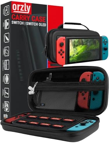 Funda de Transporte Orzly Compatible con Nintendo Switch y Nueva Consola Switch OLED - Funda Rígida Portatil Protectora con Bolsillos para Accesorios y Juegos