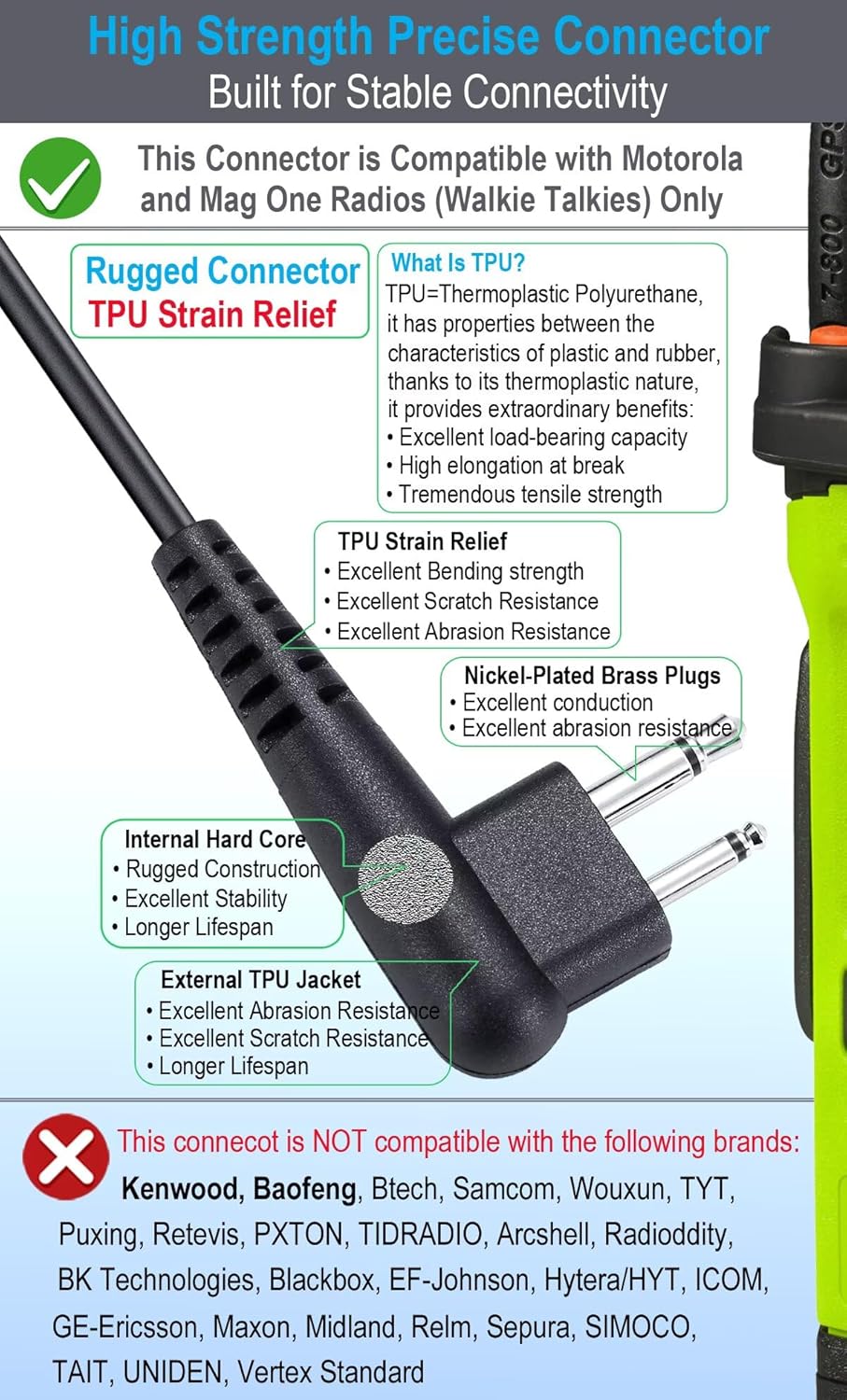 IMPORTANT NOTE: Please check Product Compatibility according to the second product image before purchasing; this earpiece is compatible with Motorola Radios/Walkie Talkies R2 CP100D CP185 CP200 CP200D BPR40 BPR40D CLS1410 CLS1110 DLR1020 DLR1060 DTR550 DTR600 DTR650 DTR700 RDU2020 RDU2080D RDV2080D RDU4100 RDU4160D RDU4163D RMU2040 RMU2043 RMM2050 RMU2080 RMU2080D PR400 VL50 and more; This is not Intrinsically Safe earpiece, This is not water-proof earpiece. 12 month warranty.