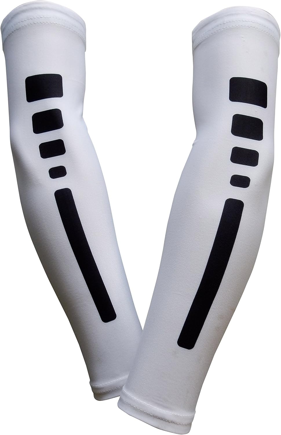 -New Pair Arm Sleeves / Choose Your Color -Sleeves are made of a Polyester / Lycra Blend -Each sleeve has a non slip material on the inside above the bicep to keep in place -Perfect for any sport! -Typically these sleeves will match your t shirt size