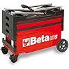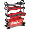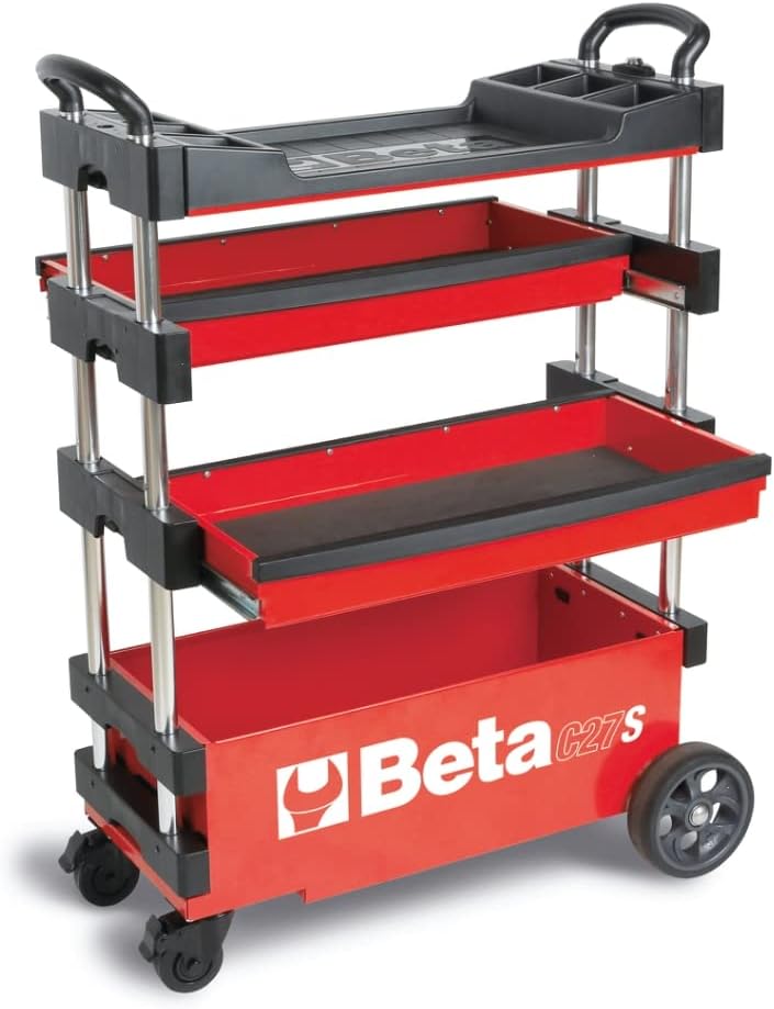 Beta C27S Collapsible Rolling Tool Cart | Heavy-Duty Mobile Metal Tool Trolley with Locking Drawers, 4” Steering Wheels, Brake System | Thermoplastic Worktop | Red